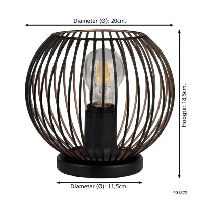 Eglo Tischlampe Almanzora Stahl Schwarz Bernstein | IP20 - Geeignet für 1x E27