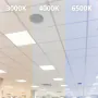 Les dimensions les plus courantes des panneaux LED sont 60x60cm (carrés) et 30x120cm (rectangulaires). Ce sont des tailles standard pour presque tous les plafonds/ des plafonds à grille. D'autres dimensions sont également disponibles, telles que 20x120cm ou 15x150cm.