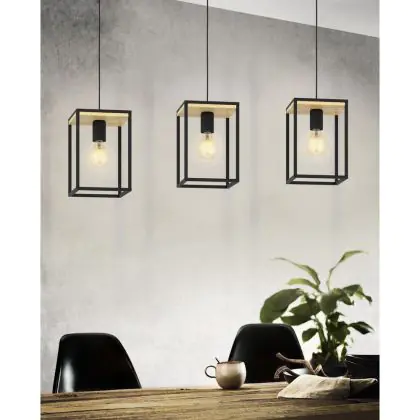 Eglo Suspension Luminaire Libertad Échantillon Bois Noir Brun | IP20 - Convient pour 3x E27