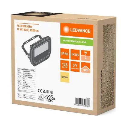 Le Lot 6x Ledvance Projecteur LED Aluminium Noir 17W 2200lm 100D - 830 | IP66 - Symétrique permet une économie d’énergie importante tout en conservant une excellente qualité d’éclairage. Sa technologie LED Intégré lui permet également d’avoir une très longue durée de vie pouvant aller jusqu’à 100000 heures. Ce projecteur LED est étanche, avec son indice de protection IP66 – Résistant à la poussière et à l'eau (fortes projections) lui permettant d’être hermétique à la poussière et à l’eau. Disponible dans la couleur 3000K - Blanc Chaud et un flux lumineux de 2200 Lm, ce projecteur LED est la solution idéale pour le remplacement de vos anciens projecteurs conventionnels.